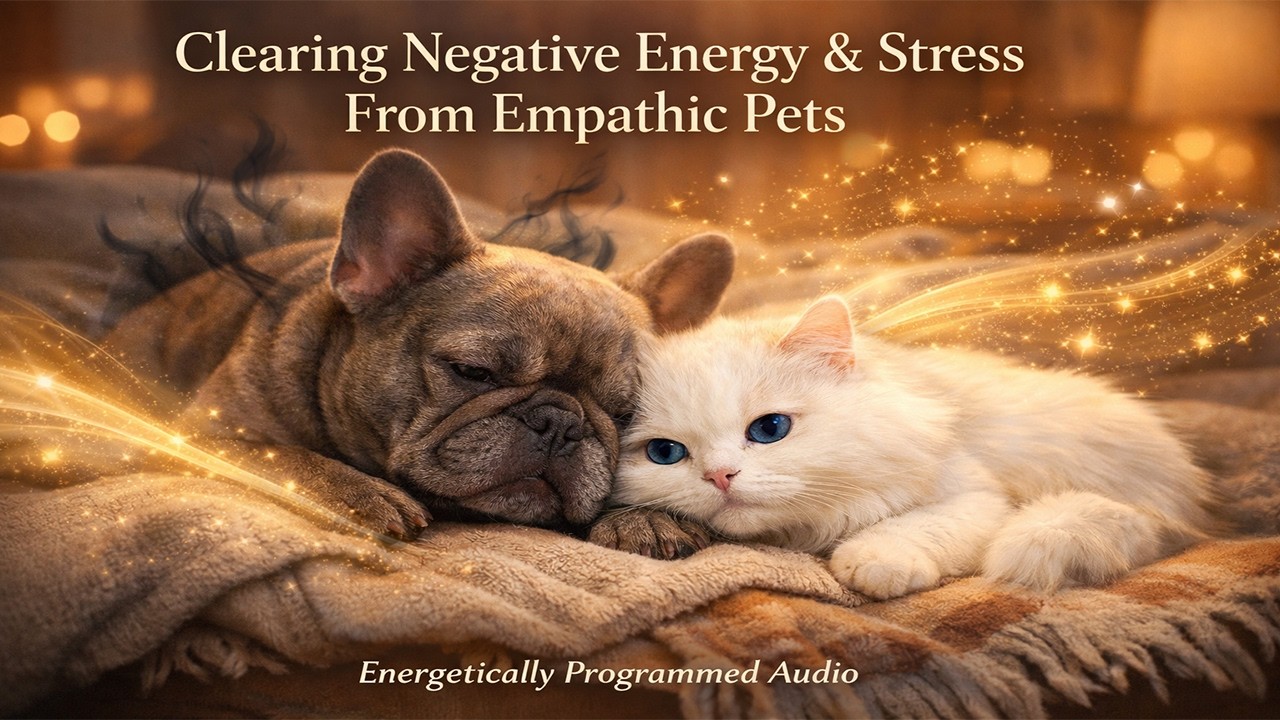 This video carries an energetically programmed field intended to gently support dogs, cats, and other companion animals who seem to absorb the emotions and tension of the humans around them. It is created for highly sensitive pets living in homes where there may be stress, anxiety, arguments, sadness, burnout, or intense emotional states that animals can “pick up” and react to.
